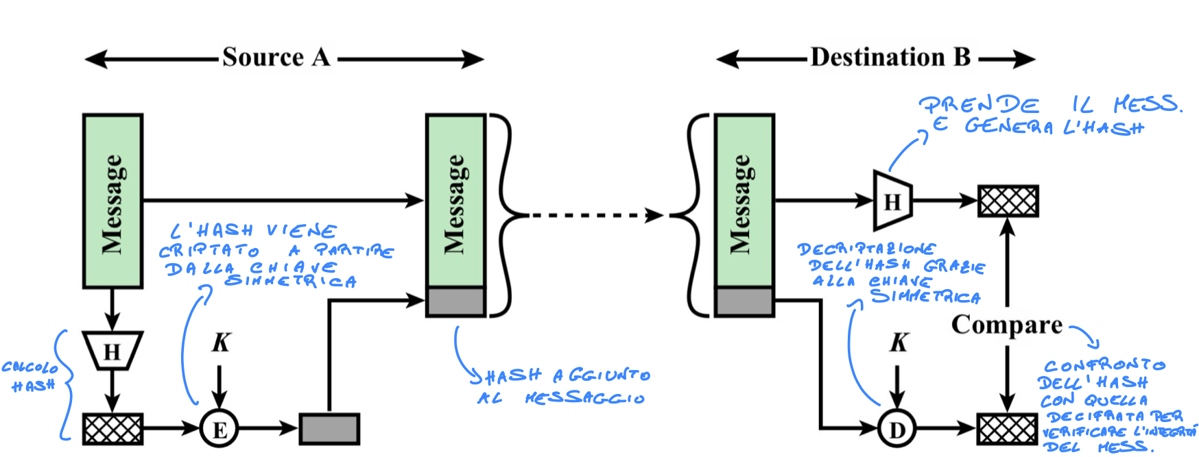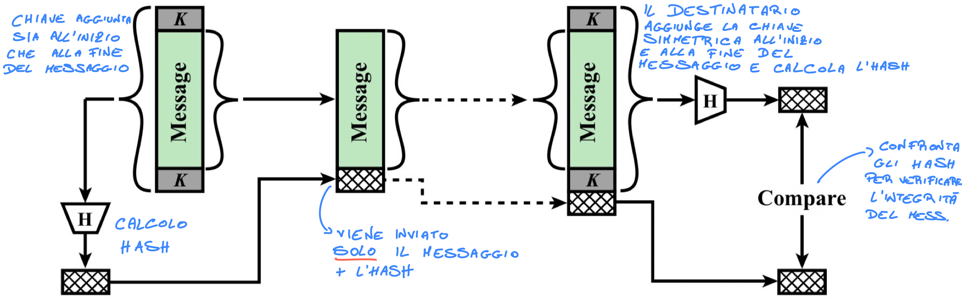 Per alleggerire il sistema e mantenere comunque una trasmissione sicura viene utilizzata una chiave simmetrica che verrà poi utilizzata per il resto della conversazione.